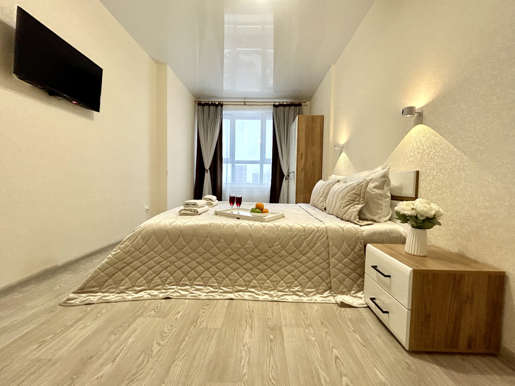 Апартаменты Двухкомнатные FSF Планета Уюта-Бесконтактный заезд, адрес на карте Уфа, бульвар Давлеткильдеева, д. 20, с описанием номеров и доступностью онлайн бронирования на ресурсе ВашОтель.RU , цены проживания и удобства.