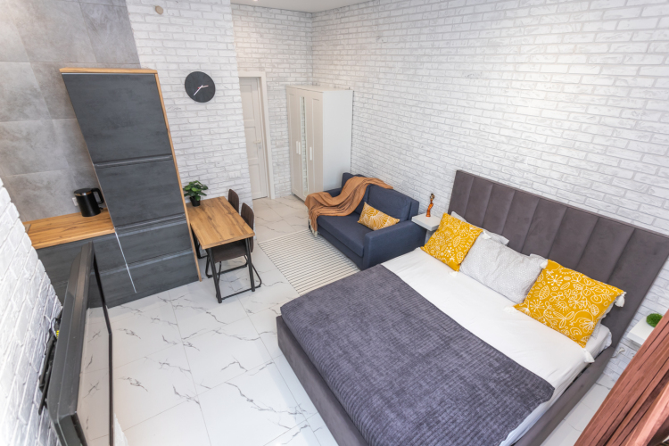 Апартаменты Лофт в ЖК Эрмитаж (Горсовет, Планета), адрес на карте Уфа, бульвар Давлеткильдеева, д. 5, с описанием номеров и возможностью онлайн бронирования на площадке ВашОтель.RU , цены проживания и удобства.